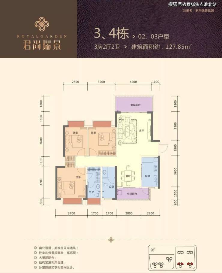 天赋其质,改变的不止是居住环境,还有格调、尺度与生活品质。君尚瑞景建面约120-150㎡宽境华宅,全明通透,户型方正,视野开阔,通风采光俱佳。尊崇人文美学空间设计,营造奢阔空间与舒适体验,筑就幸福生活。
