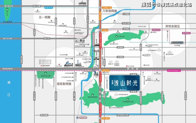 交通:距地铁 5 号线、8 号线(规划中)板塘冲站直线距离约 800 米,万家丽路、湘府路双城市主动脉交汇,临近长沙高铁南站,直线距离约 4 公里,可直通黄花国际机场。