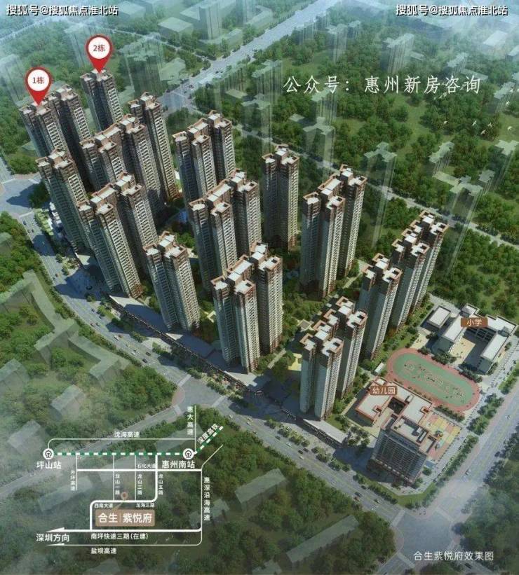 而距离深圳约2公里的合生紫悦府,距离深圳地铁14号线沙田站(建设中)、16号线田心站(建设中)仅约15分钟车程,项目约2公里内还规划有深大城际聚龙站,门口龙海三路连接南坪快速(三期)直通深圳,坐享多维交通,合生紫悦府未来可期。