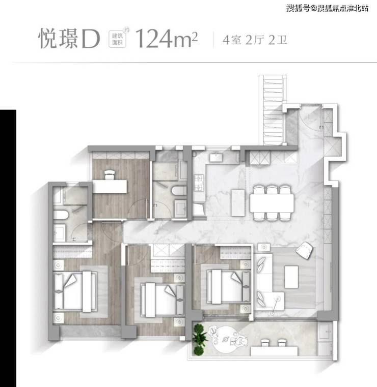 【悦璟D户型 建面约124㎡】