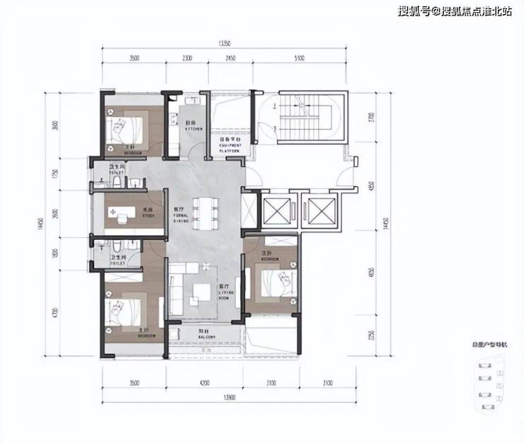 户型面积:建筑面积120-140㎡三-四房