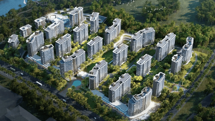 绿化率:45%(热带滨海园林,水系环绕)