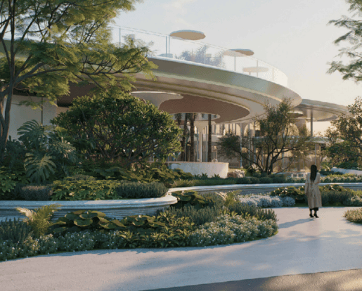 环绕式慢跑线、椰林步道、漂浮花园、旱溪雨水回收系统