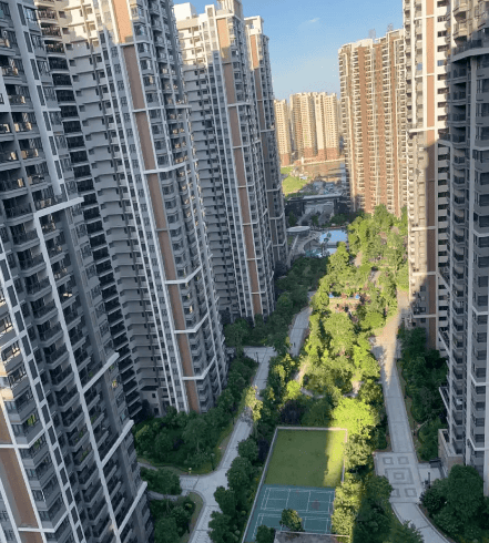小区规模:总建面积约为 600000㎡,由 21 栋高层建筑组成,规划户数为 4400 户。