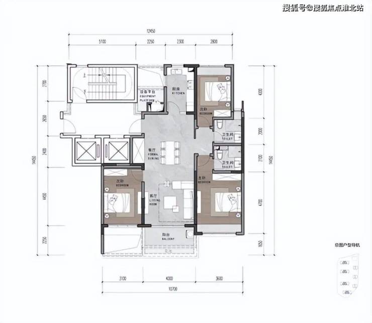 户型特点:板式设计,方正通透