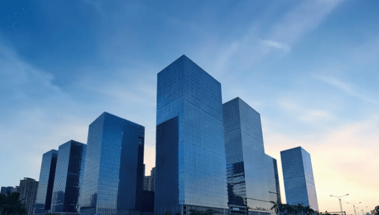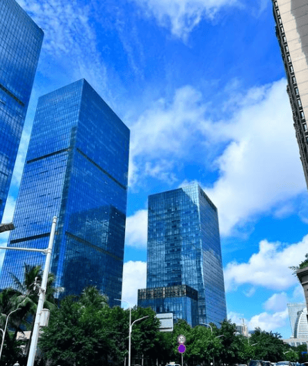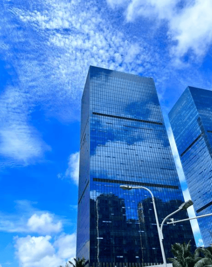 外立面:全玻璃幕墙,隔热降噪,270° 城市景观视野