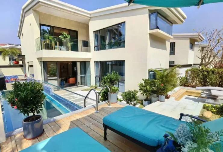 交付标准:全屋精装,品牌厨卫、智能安防、中央空调 + 新风;别墅额外配置庭院绿植、泳池基础维护设备,防潮防霉工艺适配三亚海洋性气候。