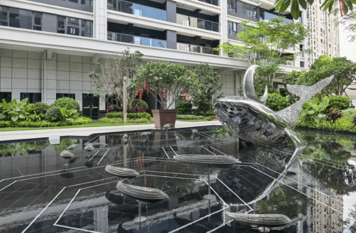 园林:25% 绿化率,海洋主题园林,配中央水景、戏水池、童趣乐园、老年康体区