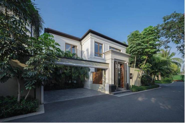 核心指标:整体规划近千亩(建筑用地约 600 亩),容积率0.29,绿化率66%,海棠湾罕见的超低密社区;总户数 752 户(独栋 362 户、洋房 390 户),车位配比 1:1.15,人车分流;新亚洲 + 热带风情建筑,保留大量原生植被;园区设医疗 / 度假 / 商业 / 物业 / 文化五大中心,配套约 2000㎡康悦泳池、私属泳池、健康管理中心;