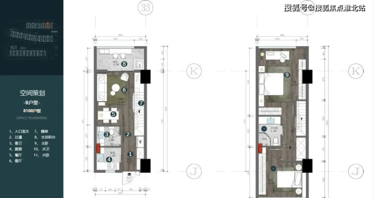 Aa户型:建筑面积约58㎡,套内面积约90㎡
