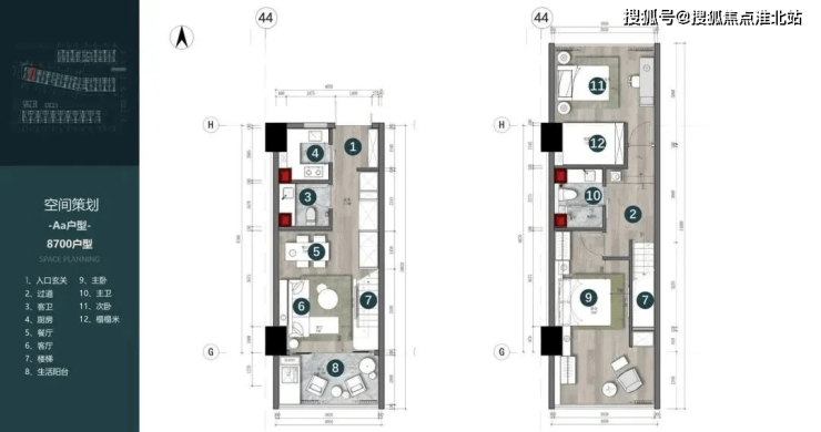 Ab户型:建筑面积约62㎡,套内面积约94㎡