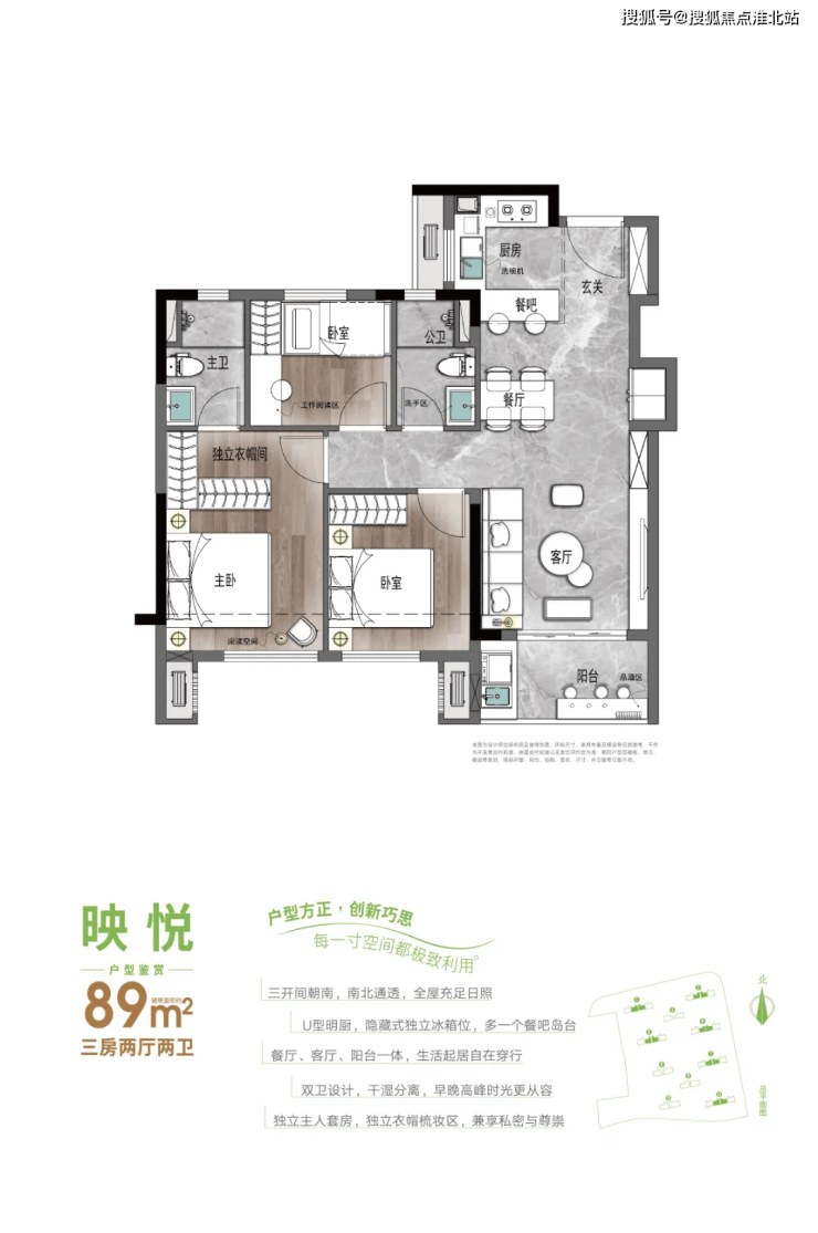 新投·映南台在户型设计上同样下足了功夫。项目提供多种户型选择,以满足不同客户的需求。起步户型约89㎡的三房设计,不仅得房率高,还特别在客厅安排了专有的冰箱位,为厨房预留了更充分的烹饪空间。