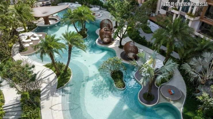 洋房区以泳池为核心,自然流动的曲线,放松的海岛布置,紧密围绕这些开展社区的水上活动,泳池派对,同时又是一种热带海岛的度假体验。
