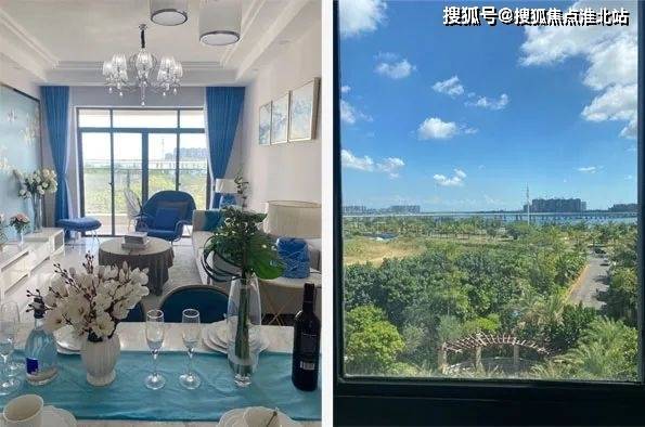 样板间在5楼,客厅和卧室坐着就能看到南渡江的美景。目前房源情况是:可以看江景的户型77㎡仅余1层,82㎡有7层和21层(顶楼);93㎡三房也有少量房源,但这个户型看不到南渡江。项目园林水系已经做得七七八八了,已经有业主入住,好几户正在装修中。