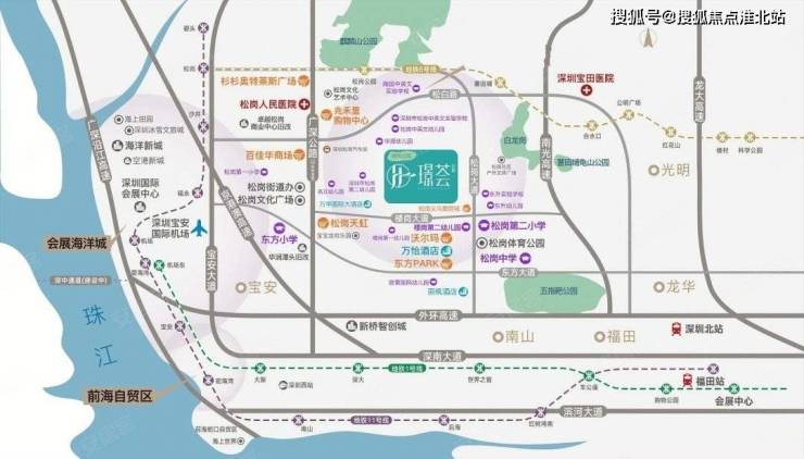 璟荟名庭,位于宝安区松岗街道楼岗大道与楼岗东路交汇处,项目所在区域属于松岗老中心地带,西侧是前进公社统建楼,南侧约500米是联投东方PARK,西南侧约400米是天虹商场,东南侧1公里内有松岗第二小学,松岗中学,松岗体育中心,西水湿地公园等配套。