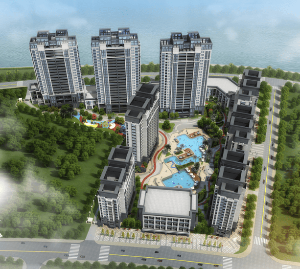 内部配套:自带2 万㎡商业街(已入驻海南银行、品牌餐饮)、5 万㎡星级酒店、6 万㎡商务办公、大型水上乐园(含泳池、滑梯)、全龄段休闲广场、书吧、共享厨房等。