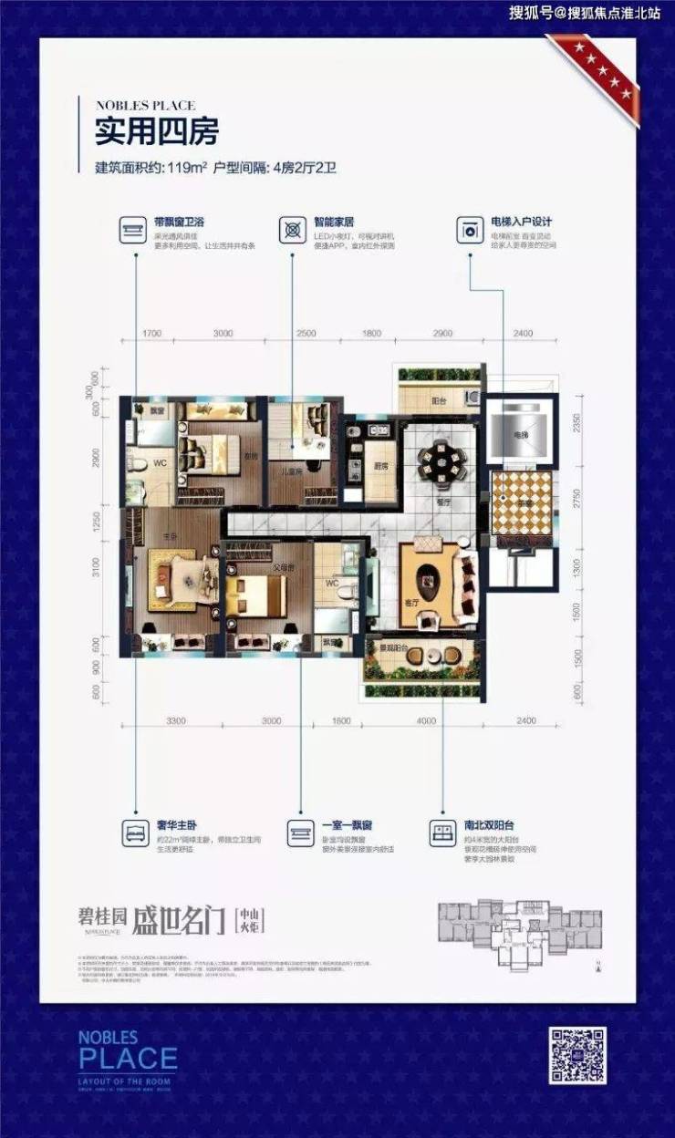 2、全明通透戶型,居住舒適度較高,整個空間採光充足,立於後期居住;整個戶型空間佈局合理,做到了乾濕 分離、動靜分離,方便後期生活;