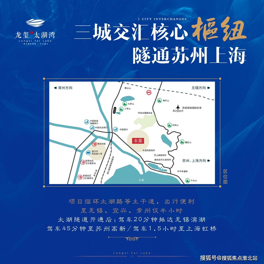 交通快捷:龙玺太湖湾山庄占据优势的交通条件,本案距无锡市区直线距离约23公里,距宜兴市区约20公里,距常州市区约29公里,处在宜、锡、常几何中心,到达三城市车程均在半小时之内。至无锡硕放机场约37公里,至常州奔牛机场约52公里,交通条件通达便捷。