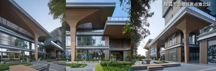 沿坝新路商业,提取传统骑楼形式现代方式演绎与景观相结合,打造格调,自然,闲适的商业氛围。