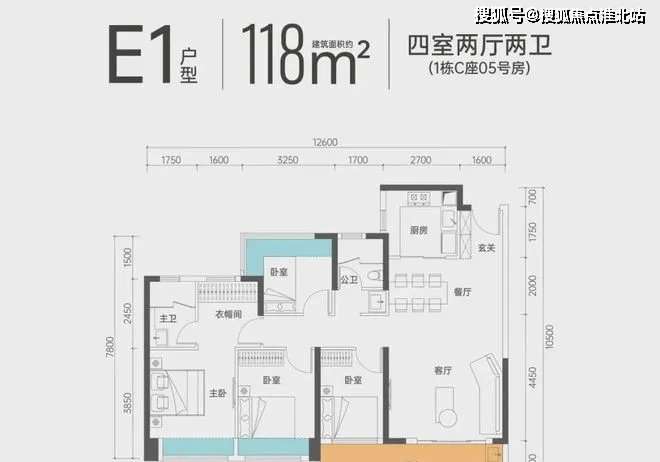 户型-118㎡4房2厅2卫:两种户型均带尺度超阔绰的宽景阳台,满足进阶生活更高享受。