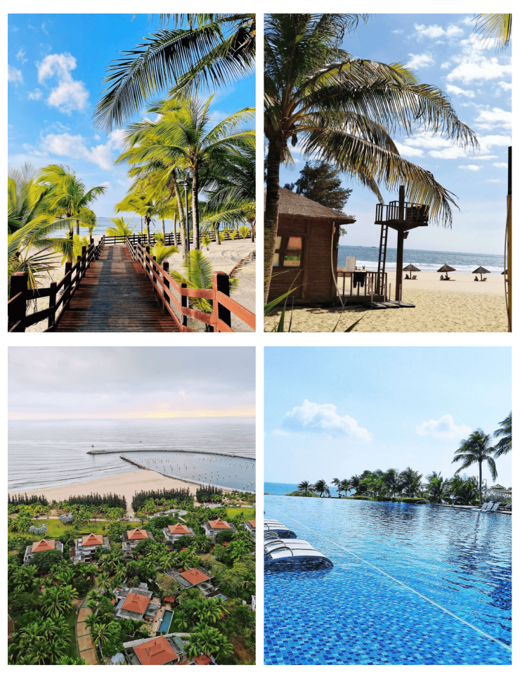 休闲:12 公里清水湾 “会唱歌的沙滩”、游艇会、南湾猴岛、椰田古寨。