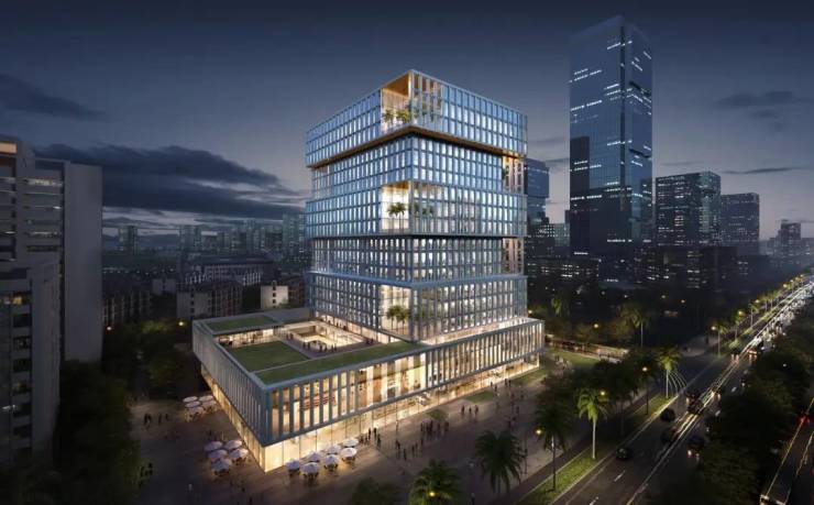 生态甲级办公(3–18F,140–2420㎡):半层 / 整层灵活分割,空中花园层可做商务接待区,4.2–4.5 米层高,视野通透;