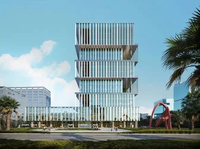 区位与开发:开发商海南申亚东岸投资有限公司(上海申亚集团全资),丹麦SHL 建筑事务所设计,上海建工总包;40 年商办产权(商水商电,不可落户),2024 年 12 月交付(现楼);高端商办物业团队,物业费 22 元 /㎡・月;总高 18 层约 80 米,北欧简约风格,全铝镂空 + LOW-E 玻璃幕墙,4/7/10/13/17 层设空中花园,垂直绿化生态办公;