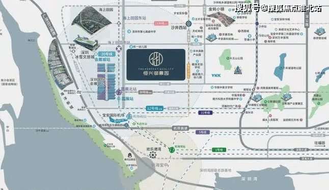 交通配套:紧靠穗莞深城轨 — 沙井西站,30 分钟连通各大城市中心;距离地铁 12 号线海上田园南站约 700 米,20 号线也在附近,10 分钟可上沿江高速、外环高速,30 分钟内可通达宝安中心、南山中心。