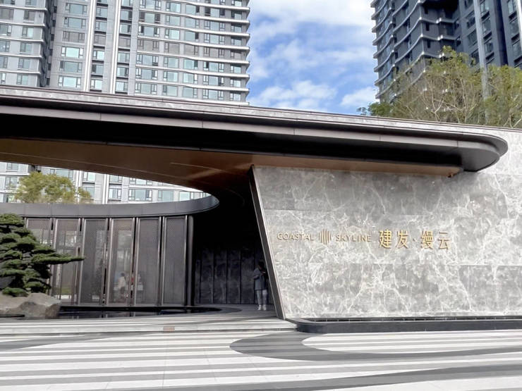 建筑特色:延续建发高端产品的 “禅境中式” 设计理念,以 “空、象、简、朴” 手法融合传统与现代。建筑采用灰色平涂搭配仿珍珠蓝真石漆外立面,辅以中式窗花、檐口等细节元素,既符合年轻群体审美,又保留古典韵味。公区配置对标高端住宅,入户大堂采用深色石材通铺与精装墙面,车库落客区搭配铝合金格栅吊顶,地面仿石材瓷砖通铺,品质感媲美星级酒店。
