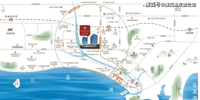 交通配套:距轻轨站、公交站约 50m,距三亚高铁站约 800m,距三亚绕城高速约 3.5km,距凤凰机场约 8km。
