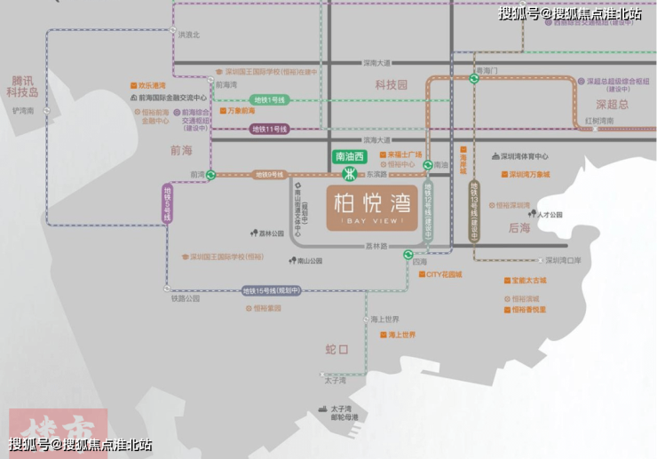 恒裕柏悦湾位于深圳市南山区东滨路与向南路交界处,属 地铁9号线 “南油西站” 上盖物业,是南山超级总部半岛的中心板块。