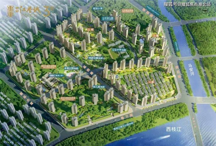 超级地块 坐享一江一河四公园 一线西枝江景超级体量 160万方总规模 全配大城超强魄力 140-180平纯大户型打造 超低容积 2.04超低容积率 城区绝版超级布局 M型楼栋布局 90%户型瞰江
