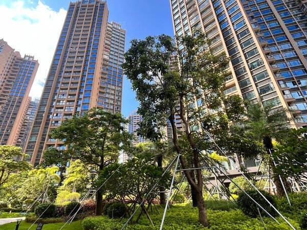 建筑规划:小区由高层和超高层建筑组成。整体布局合理,楼间距较大,保证了充足的采光和通风。小区内有 1 万㎡人工湖活水系统,还有水岸舞台、运动休闲广场、儿童活动区、1 千㎡双游泳池等配套设施。