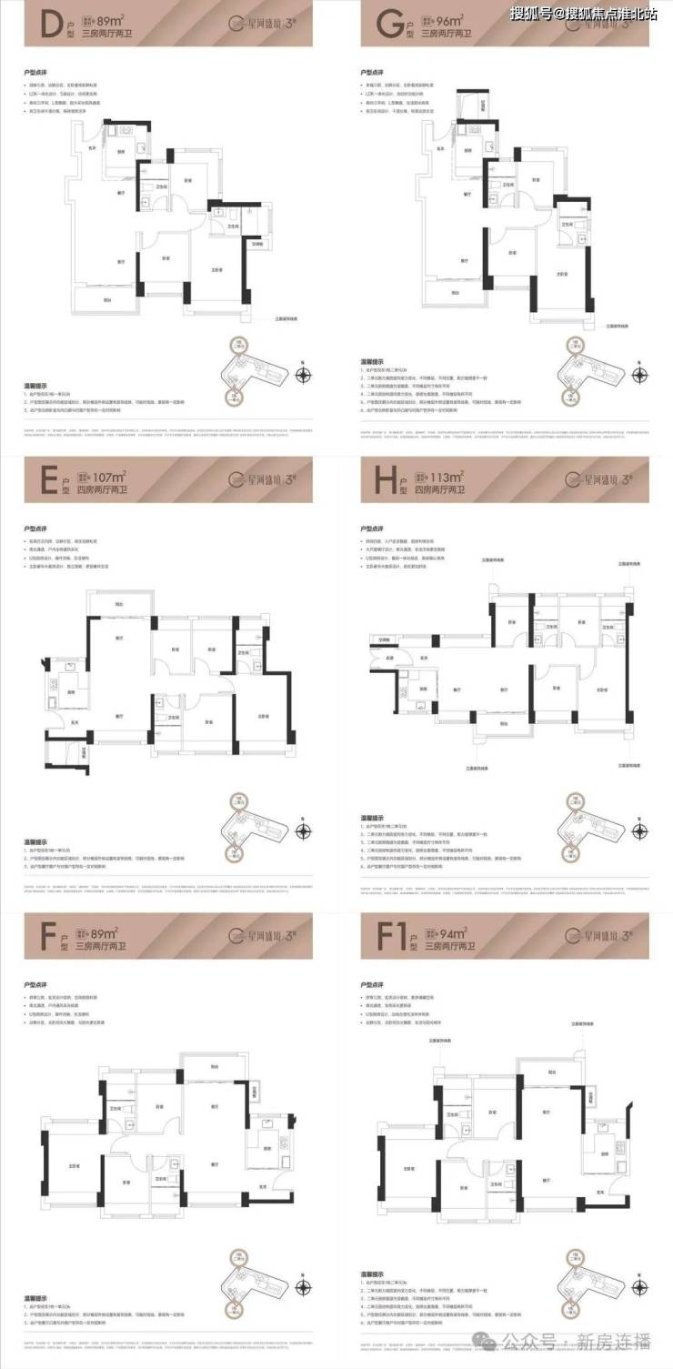 89-94平:3房2厅2卫,套内净使用率在80%,东南朝向