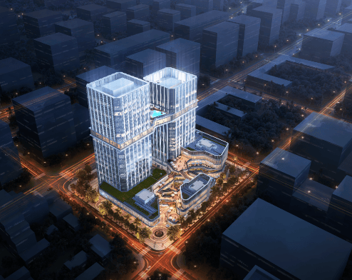 西塔:规划为雅诗阁商务酒店,配备190间客房及多功能宴会厅、行政酒廊等设施,并设有江东新区唯一的空中“云主题无边际泳池”。