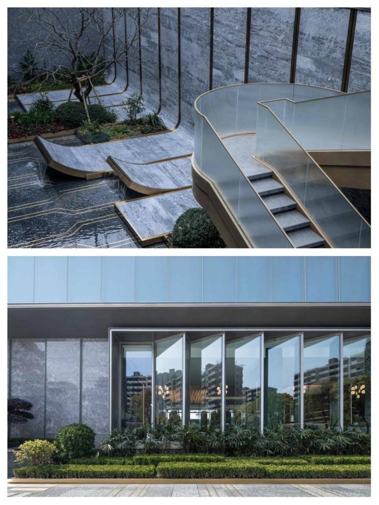 建筑设计:邀请上海天华设计团队操刀,打造 “超流体” 立面,由大面 LOW-E 玻璃幕墙、铝板和型材组成,铝板弯曲成约 90° 圆弧,呈现出如流水瀑布般的轻盈界面。