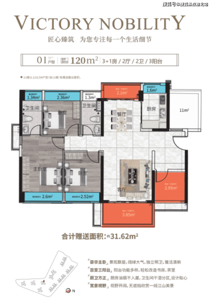 120㎡3+1房2廳2衛