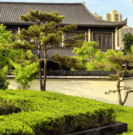 采用 **“外围合、大空间”** 设计,打造五重园林景观