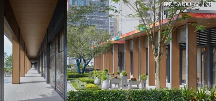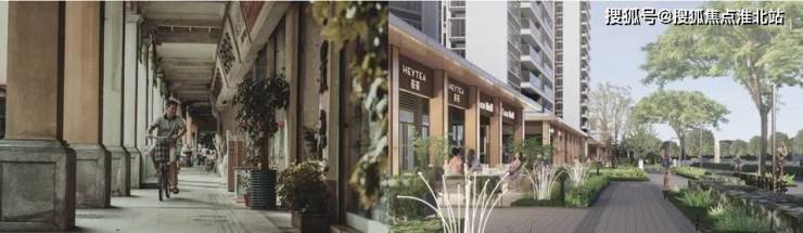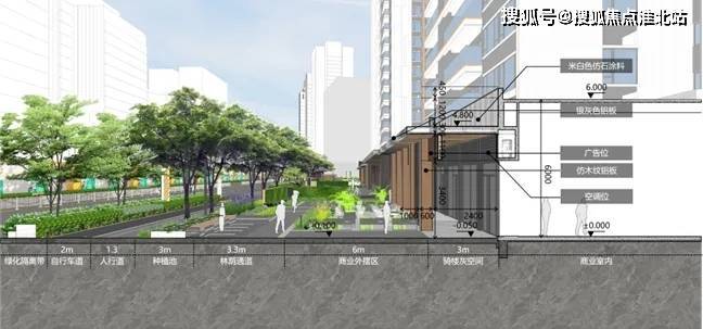 沿坝新路商业,提取传统骑楼形式现代方式演绎与景观相结合,打造格调,自然,闲适的商业氛围。