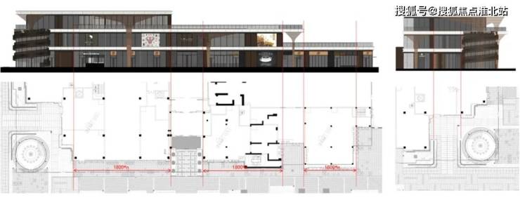 对缝——门窗以1800为模数,景观铺装宽度为600,玻璃划分与铺装对应.内凹位置作为调差段;景观铺装与示范区入口对应,于2,3层玻璃划分对应。