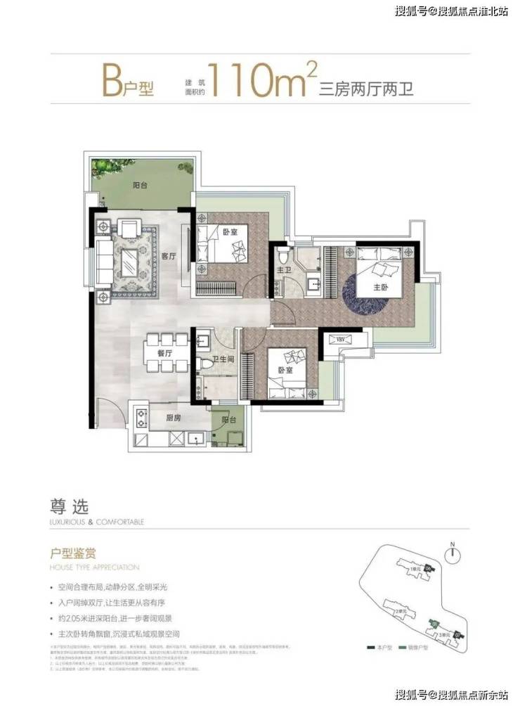 主力户型包括建面约90平方米和110平方米的A、B户型,均配备全尺寸飘窗/转角飘窗及宽敞阳台,充分利用自然景观资源。此外,特别设置了建面约153平方米和186平方米的大户型,位于一单元和二单元末端,独享中山公园的景观资源。