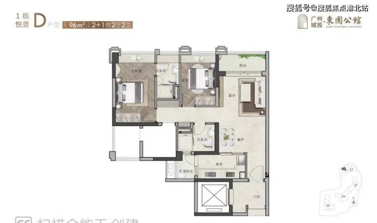 91平3房、96平2+1房:北向,其中,96平的+1房有一半面积是赠送的,91平无赠送面积。