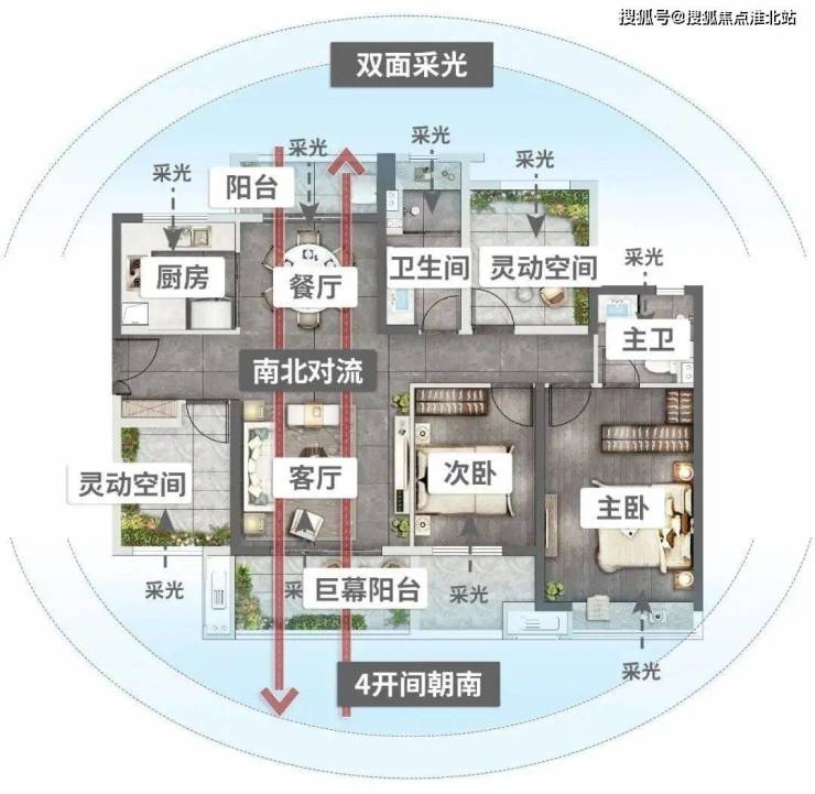 建面约117平3+1户型设计另一个建面约117平竖厅3+1户型设计,布局传统,尤其方正。对喜欢大家庭、南向生活的买家来说,这个户型非常友好,从主卧到次卧,再到N+1灵动空间,四开间朝南,你与家人的每一个早晨,都能在和风旭日里睡到自然醒。