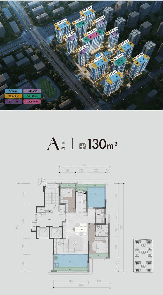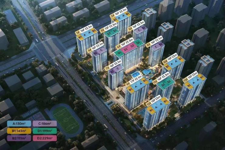 户型特点:所有楼栋均为纯板楼设计,确保每户都能实现南北通透,采光通风俱佳,最宽楼间距约 87 米。大户型层高 3.3 米,小户型层高 3-3.1 米,得房率约 110%。