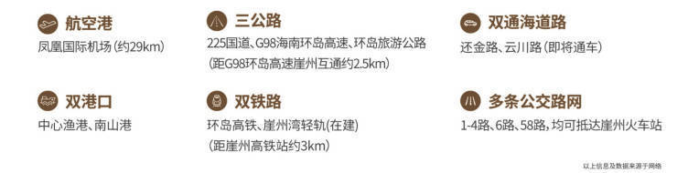 区域内享崖州古城,及周边南山寺、大小洞天、天涯海角等5A级景区旅游资源,出门即度假。