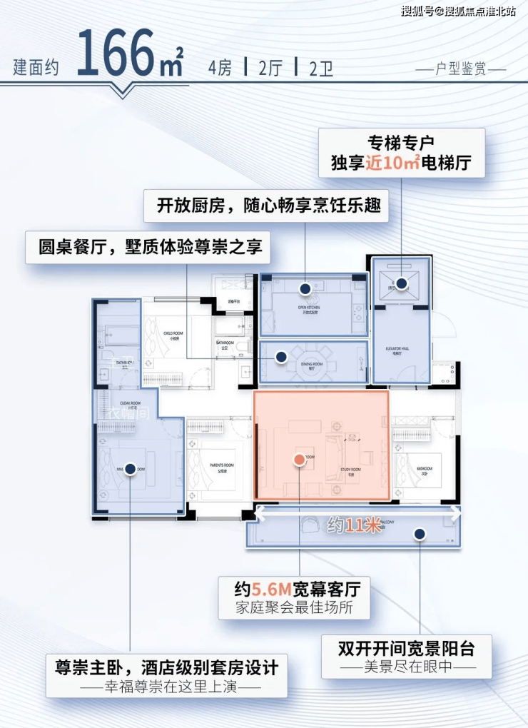 143㎡和166㎡两大户型更有惊喜,采用购房者最不能拒绝的纯板楼结构设计,可享专梯专户,独享专属领域让私密度大大上分。