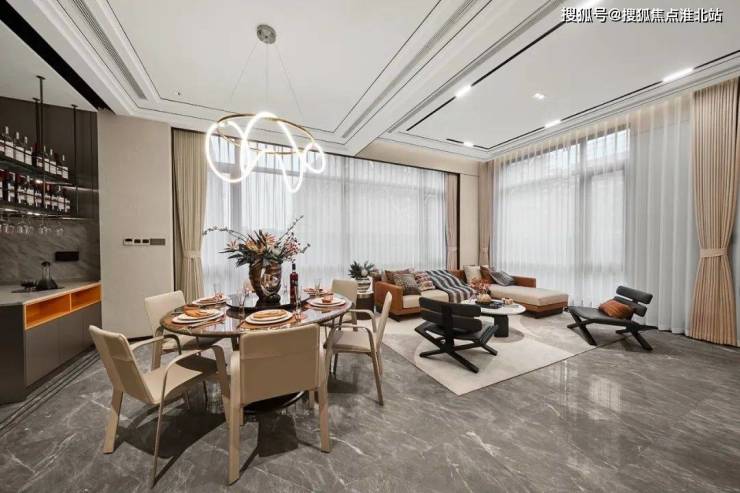 洋房户型:建面约 112-126㎡,以建面约 112㎡户型为例,为三房两厅两卫,全明户型,南向三开间,面宽达约 10.8 米,南向客厅连通约 10.2 米三联阳台,餐客厨一体,U 型厨房设计,还有独立书房。