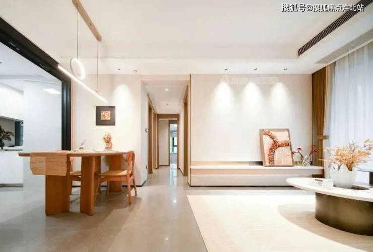 步入餐客厅,约3.5米的开间带来的开阔感,堪比前环半岛那些90㎡左右的“前辈们”。