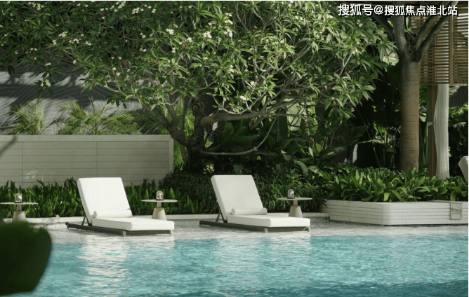 休闲设施:设有林下泳池 CLUB,泳池旁绿意掩映,设置休闲廊亭、躺椅等,泳池内规划亲子按摩池、家庭泳池等分区。打造自然 HUB,甄选百余种热带花果树木,林下休憩空间嵌入沙坑、叠水与丛林。全区架空层设置檐下 LOUNGE 功能交互空间,打造健身房、瑜伽室、儿童活动区、休闲书吧、会客茶室、颐养健身等全龄生活空间。