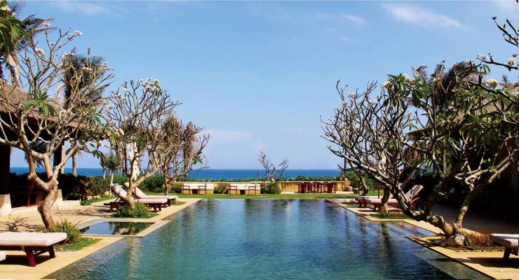 建筑风格:融合中国商周 / 战国文化元素,采用海南火山岩等本土耐候材料;单层为主,户户通透,保证观海面与庭院私密性;园林为 40 万㎡热带生态园林,水系与植被交错。